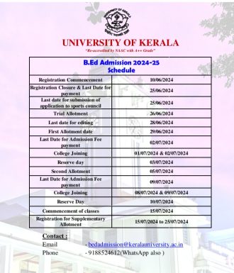 UNIVERSITY OF KERALA B.Ed Admission 2024-25 Schedule