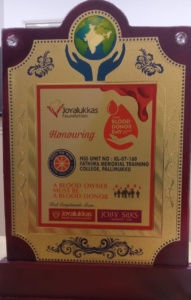 NSS HONOURING BY JOY ALUKKAS ,FOUNDATION KOLLAM