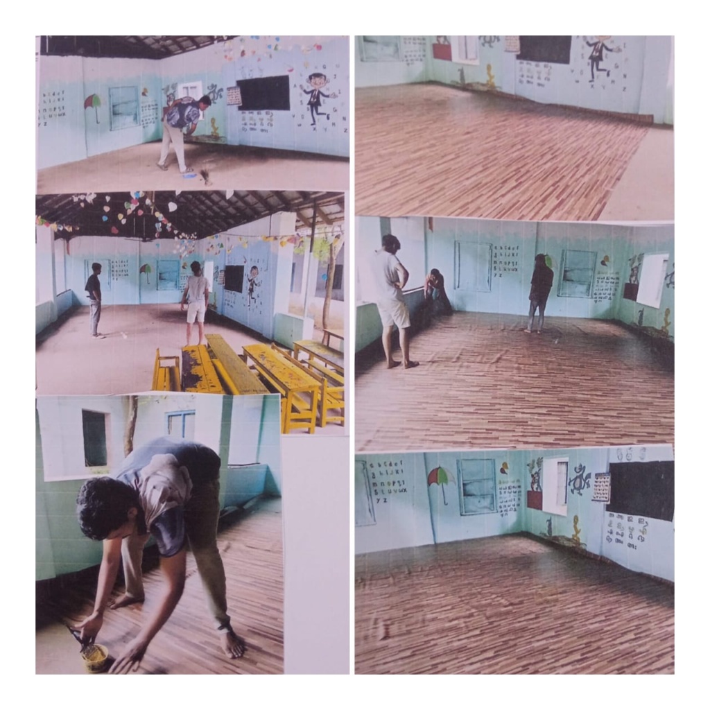 FLOOR MATTING BY NSS VOLUNTEERS AT DEVIVILASOM L P S KOLLAM-